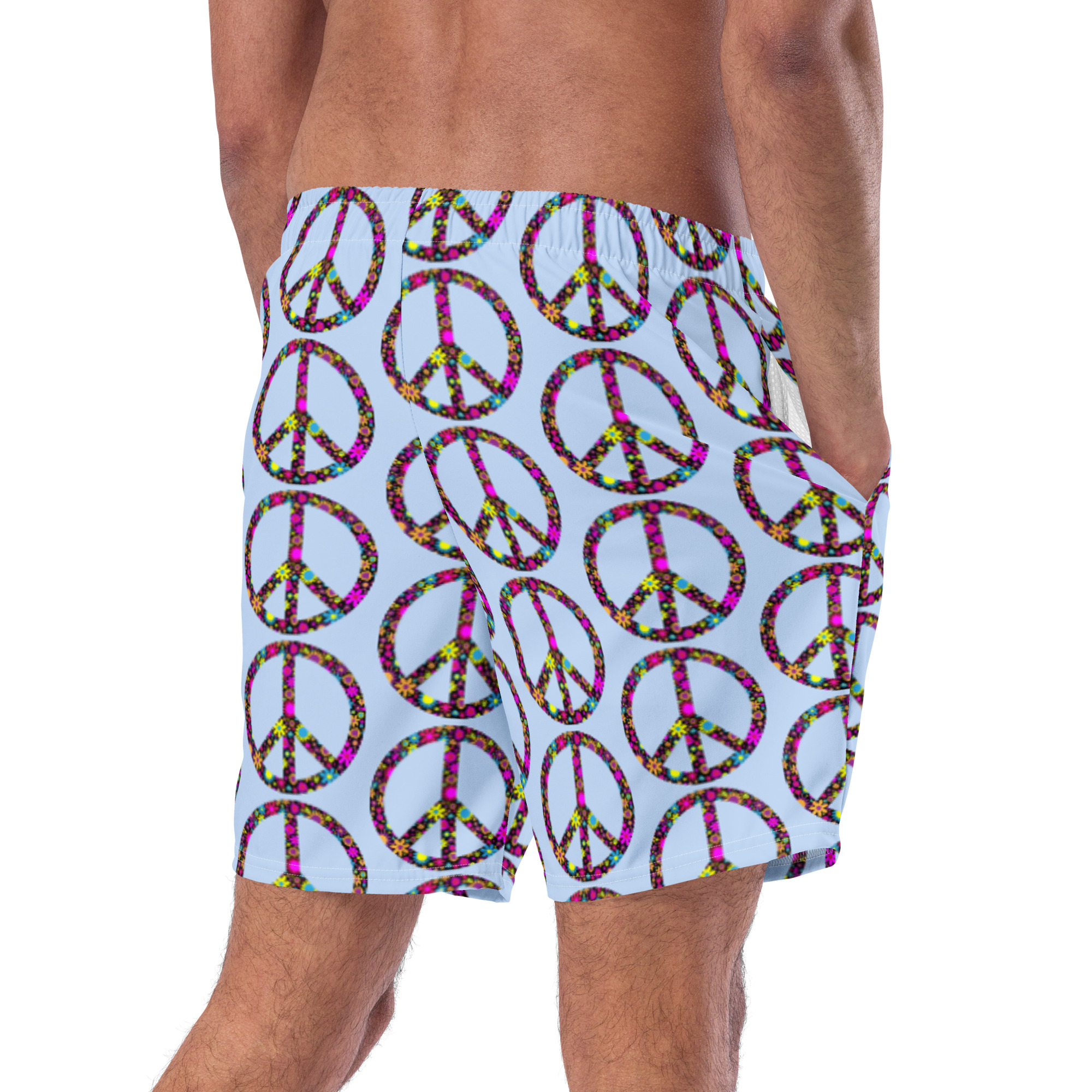 These WTees Flower Power Peace Sign Swim Trunks Hawks Blue have everything you need for a hot summer day—they’re quick-drying and breathable, have multiple pockets for your belongings, and feature a silky, anti-chafe inner liner. Get yours now!