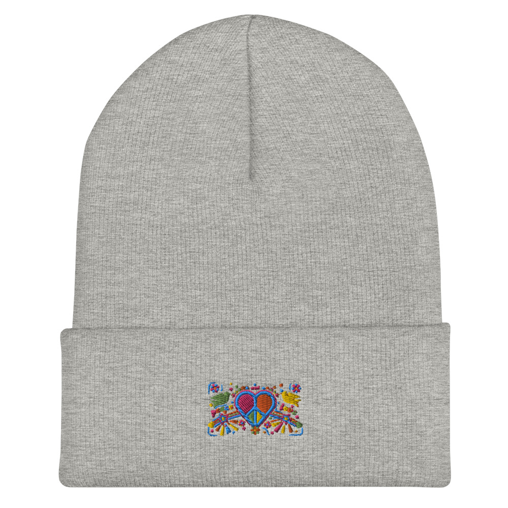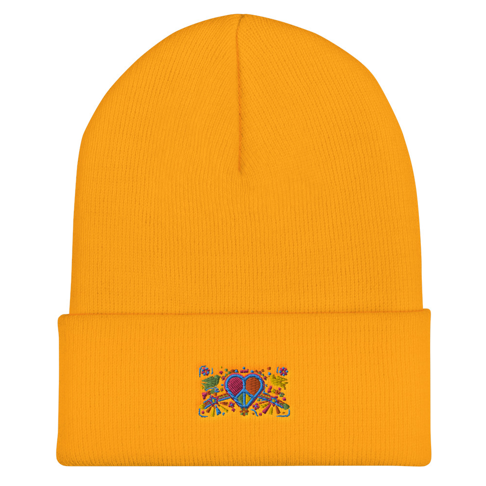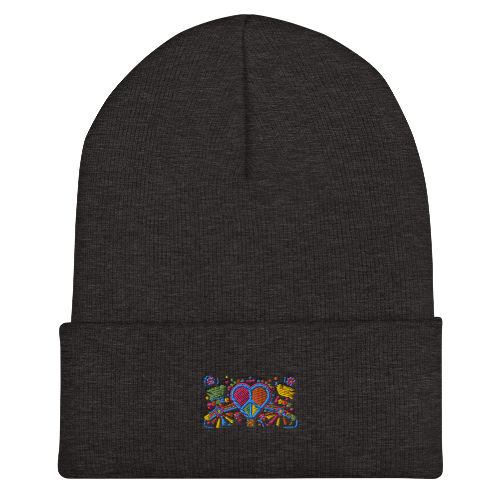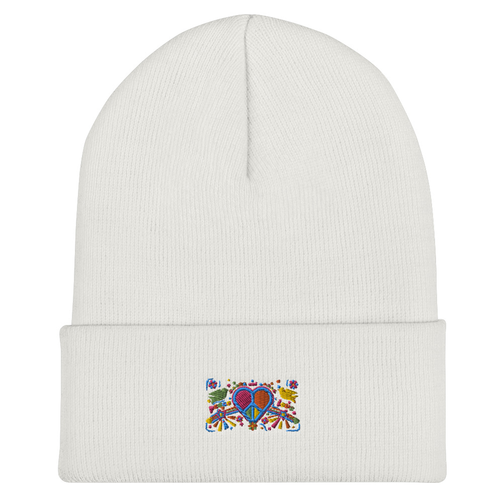 The WTees Peace & Love Cuffed Beanie is a snug, form-fitting beanie. It's not only a great head-warming piece but a staple accessory in anyone's wardrobe.