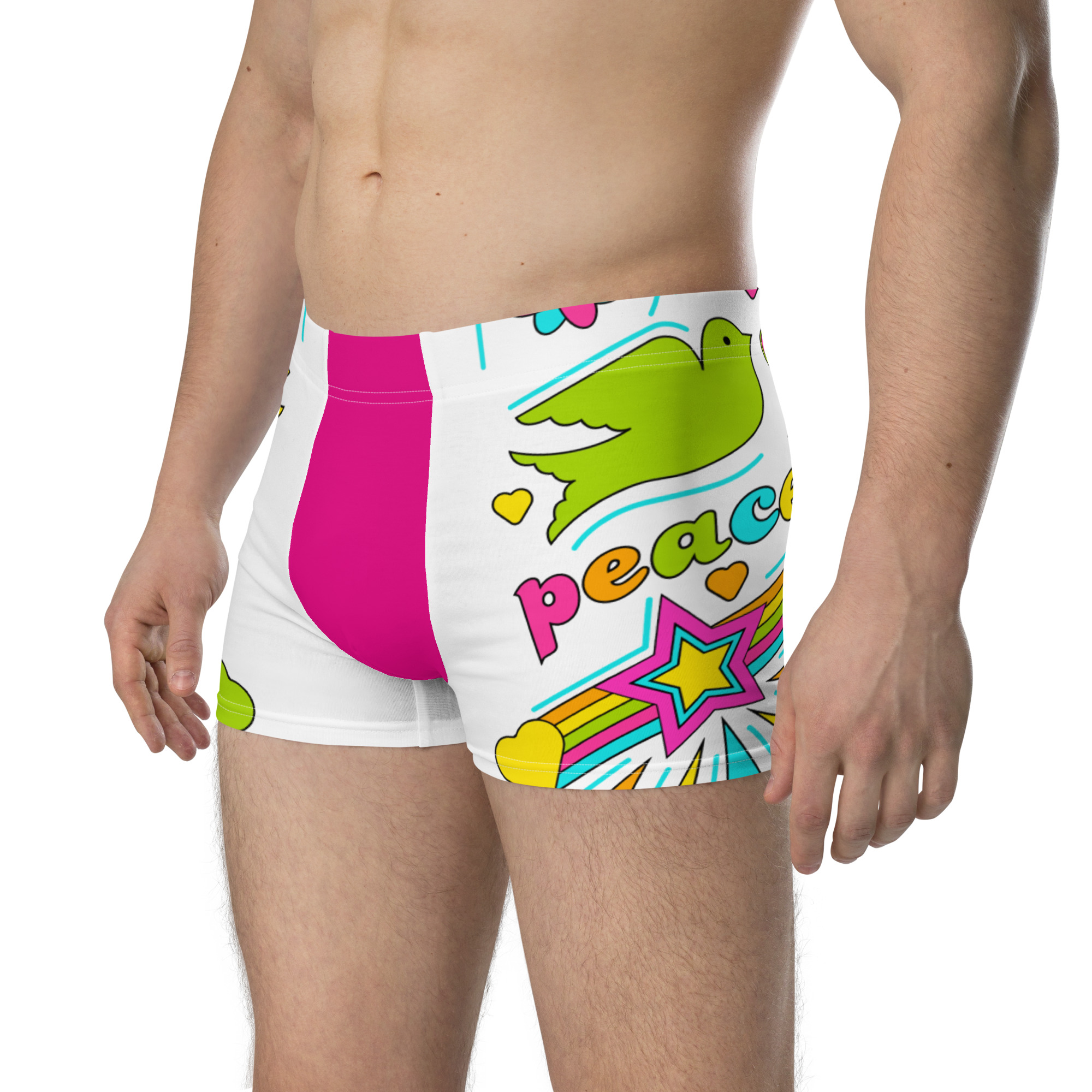 These WTees Peace & Love Trunk Boxer Briefs Red Violet are made from a soft and stretchy material that ensures comfort throughout the day. The boxer briefs have no back seam, and they feature a lined front pouch for extra comfort and support.
