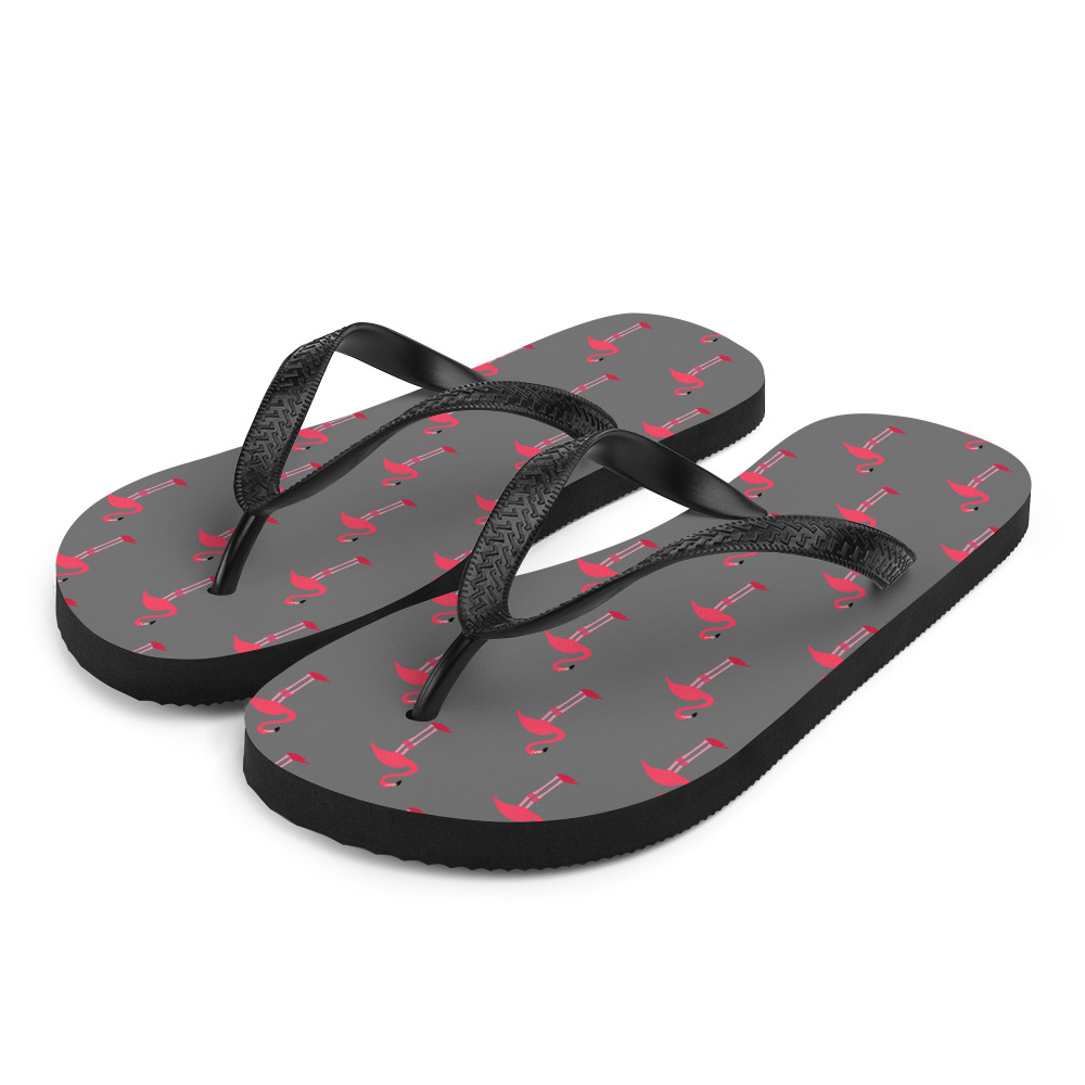 WTees Pink Flamingos Flip-Flops Grey