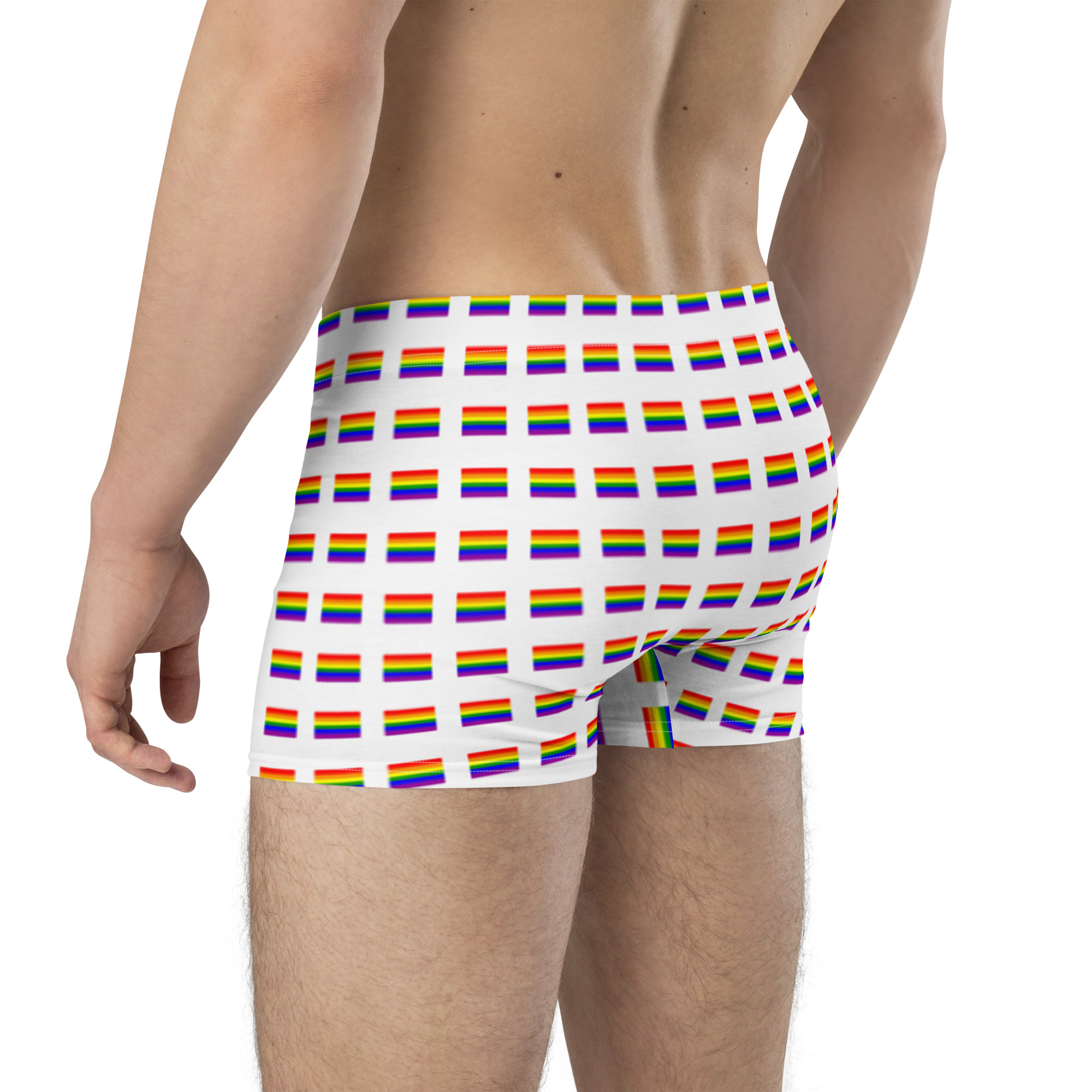 Be proud from the underwear up! The WTees Rainbow Flags Trunk Boxer Briefs White is made from a soft and stretchy material that ensures comfort throughout the day. The boxer brief features a roomy lined front contour pouch for great support and have no back seam extra comfort.