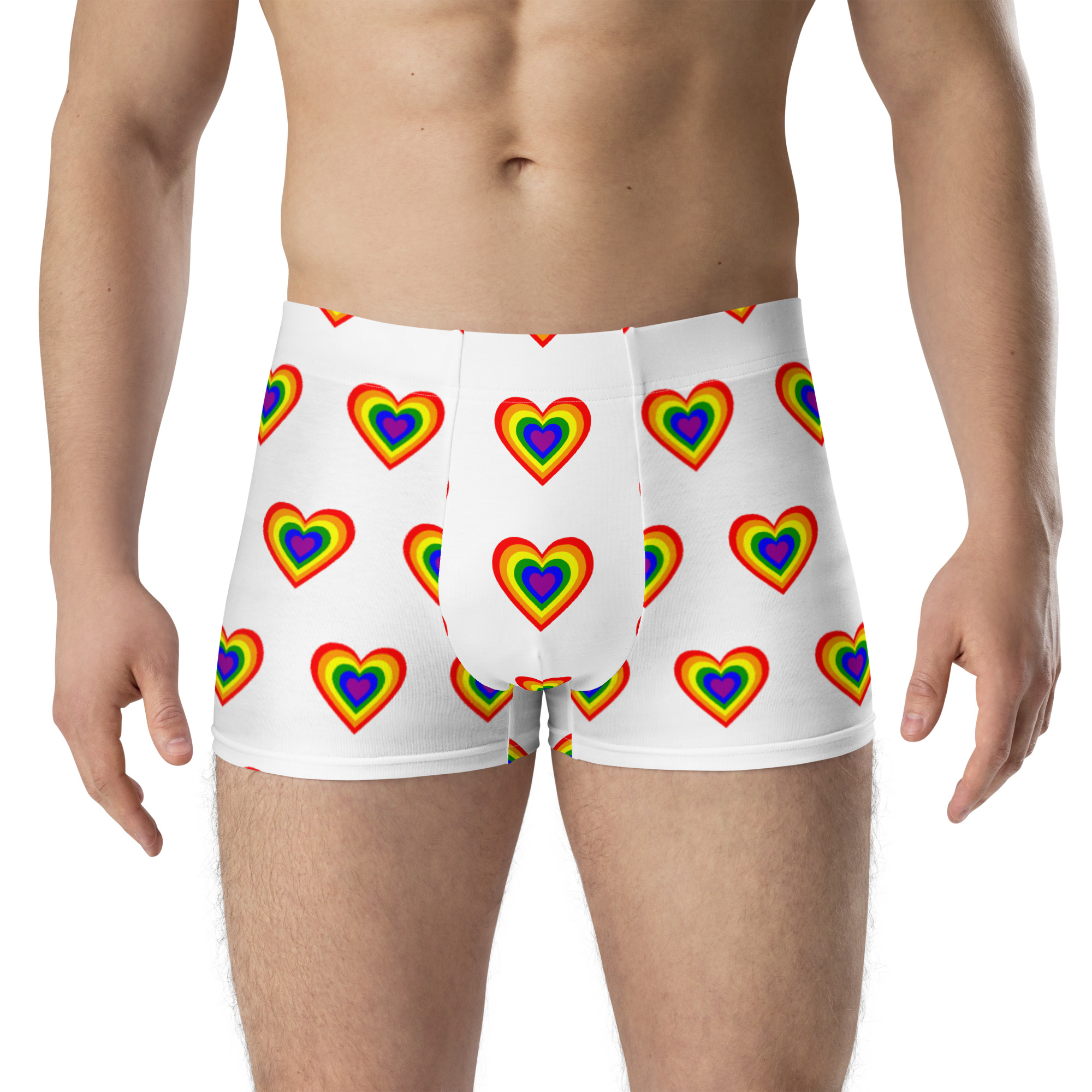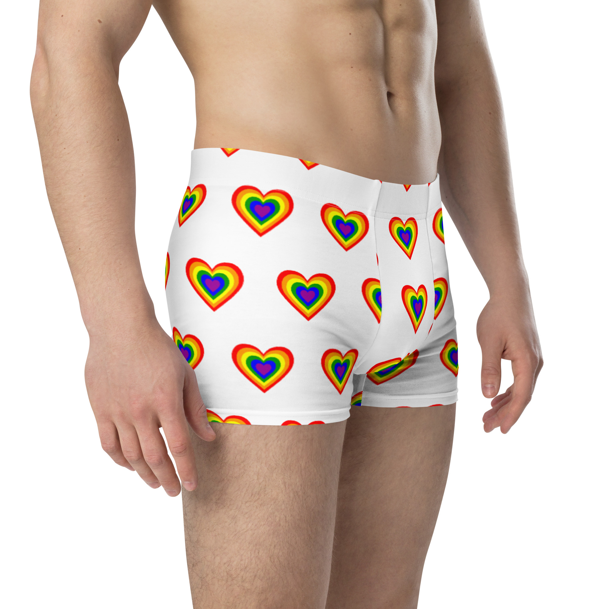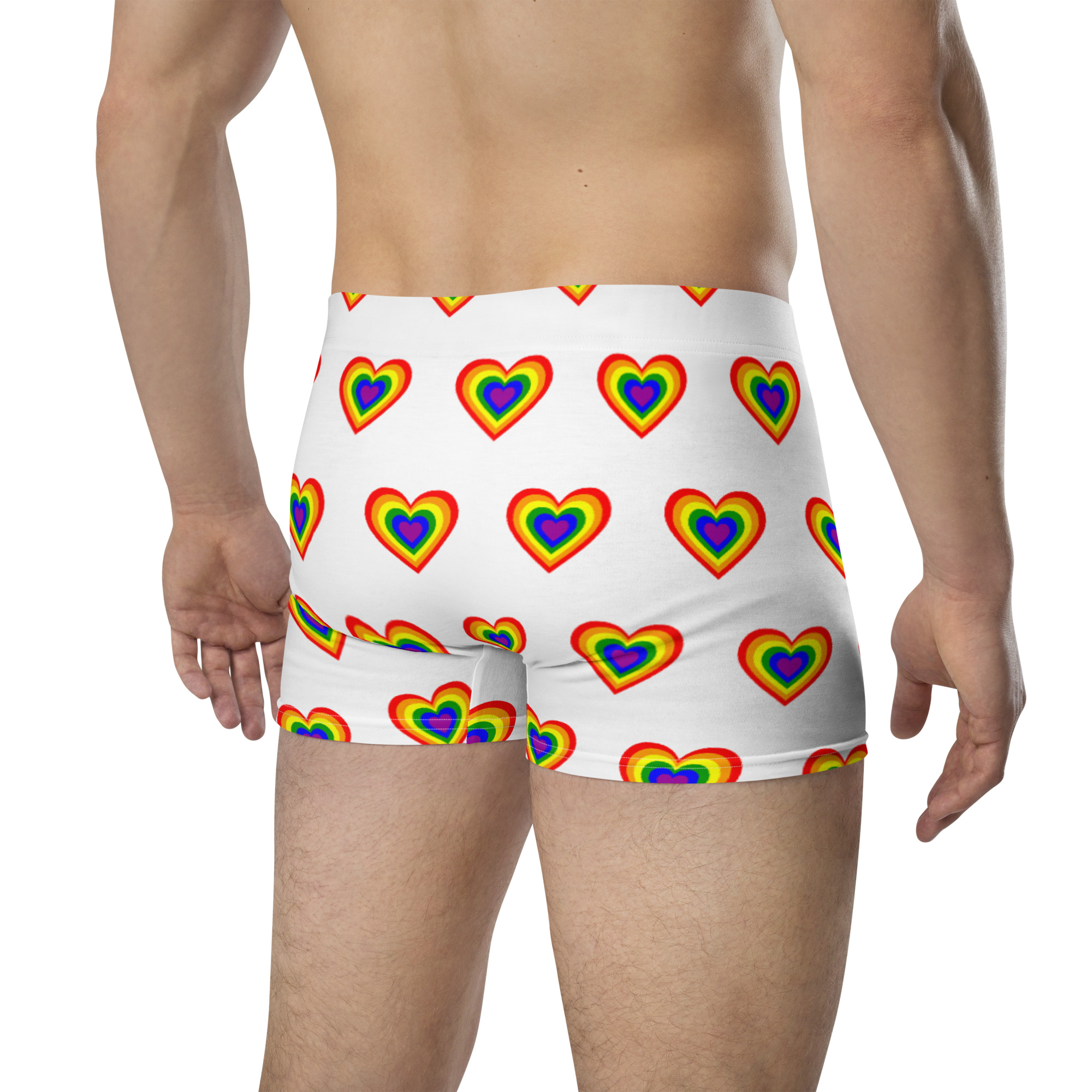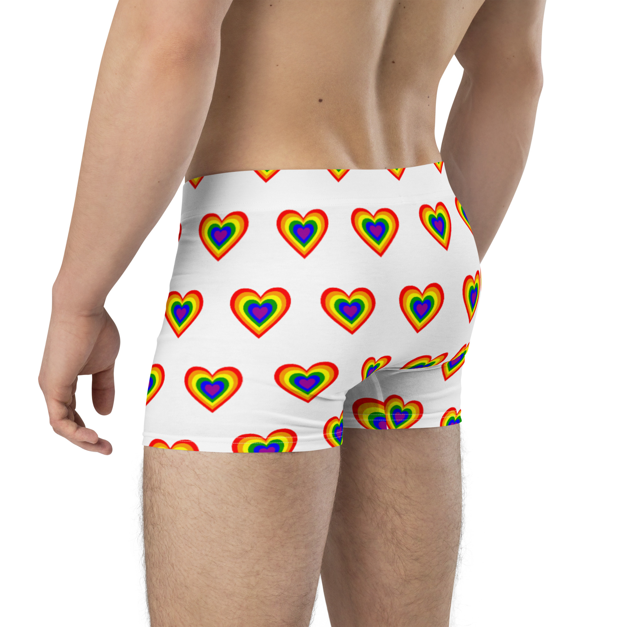 These WTees Rainbow Hearts Boxer Briefs White are made from a soft and stretchy material that ensures comfort throughout the day. The boxer briefs have no back seam, and they feature a lined front pouch for extra comfort and support.
