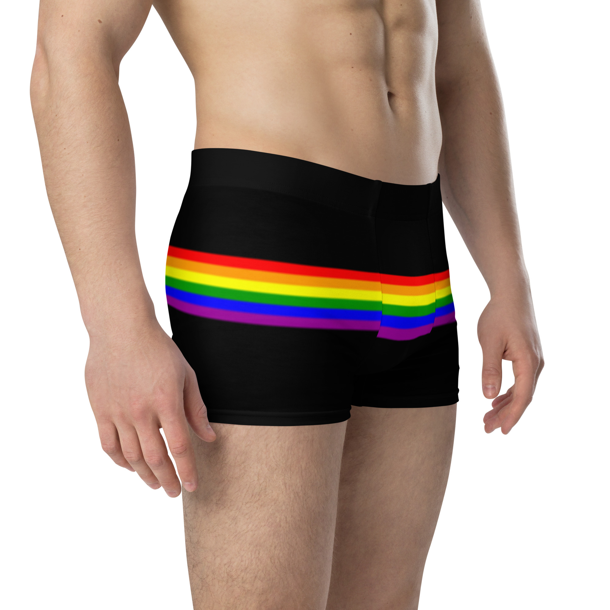 These WTees Rainbow Stripe Trunk Boxer Briefs Black are made from a soft and stretchy material that ensures comfort throughout the day. The boxer briefs have no back seam, and they feature a lined front pouch for extra comfort and support.